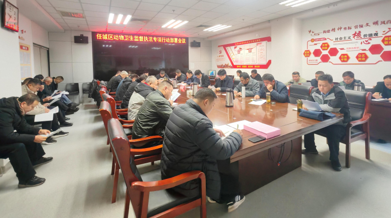 12月18日,濟寧市任城區農業(yè)農村局召開(kāi)專(zhuān)題會(huì )議,對專(zhuān)項行動(dòng)進(jìn)行周密部署。會(huì )議要求深刻認識當前動(dòng)物衛生監督工作的重要性與緊迫性,以“零容忍”態(tài)度聚焦關(guān)鍵環(huán)節,強化執法力度,確保各項措施落到實(shí)處、取得實(shí)效,切實(shí)維護養殖業(yè)生產(chǎn)安全、動(dòng)物源性食品安全和公共衛生安全。